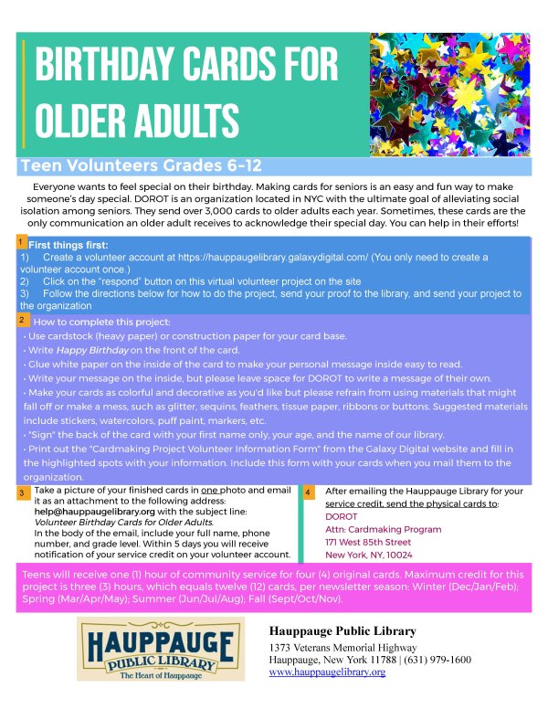Everyone wants to feel special on their birthday. Making cards for seniors is an easy and fun way to make someone’s day special. DOROT is an organization located in NYC with the ultimate goal of alleviating social isolation among seniors. They send over 3,000 cards to older adults each year. Sometimes, these cards are the only communication an older adult receives to acknowledge their special day. You can help in their efforts!