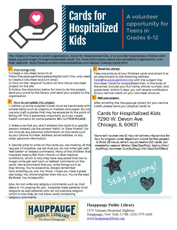 The mission of the non-profit organization, Cards for Hospitalized Kids, is to provide hospitalized children with hope, joy and magic through handmade cards. For more information about this wonderful organization, visit their website- http://www.cardsforhospitalizedkids.com/about-making-cards.html